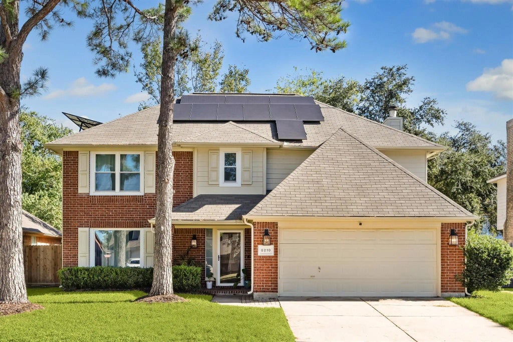 Experience the epitome of classic charm in this 2-story Katy home with 4 bedrooms, 2 1/2 bathrooms, and 2284 square feet. Downstairs features two living spaces, a fireplace, separate dining and kitchen areas, a sizable yard, and an expansive covered patio with an outdoor fireplace. Upstairs, find generously sized bedrooms, a full bathroom, and a laundry room. The primary bedroom offers an en-suite bathroom and vaulted ceiling. Additional features include solar panels, sprinkler system, security doors, double pane windows, and a newer water heater and roof. Enjoy outdoor entertainment on the extended deck. Close to I-10 and 290 with access to Cy-Fair schools and Harmony Charter schools.