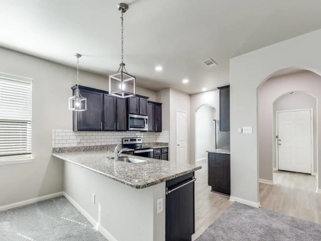 Beautiful 1 story home in the heart of growing Freeman Ranch community neighborhood.This pre owned gem offers all the benefits of a new home with neighbors already settled in and a true sense of community. As you enter home, formal dining room sits to your right, connecting to the kitchen and living area.Open concept kitchen with stainless appliances, granite countertops and breakfast bar. Home has a split floorpan for privacy. Primary bedroom with en suite bathroom featuring spacious countertop, walk in closet, garden tub and separate standup shower. Secondary bedrooms are on the other side of home with their own private restroom.Walk outside to a spacious screened patio, perfect setting for year-round enjoyment, privacy and family gatherings.Upgrades include: New Paint, New Carpet, water softener system for entire home and filtered drinking water system. Neighborhood offers playground, soccer fields and walking trail.This beauty offers more value for your money and is move in ready.