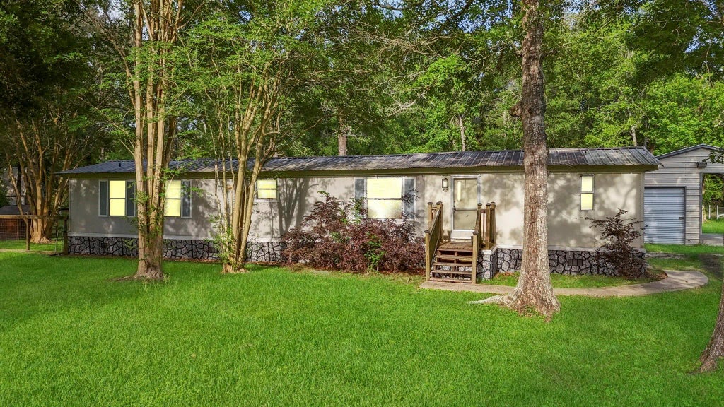 Peaceful Country Living with Endless Possibilities fully fenced, private escape nestled under a canopy of mature trees on sprawling green acreage in Dayton TX! This charming property offers the best of both worlds: serene rural vibes with plenty of functional upgrades for outdoor living, hobbies, and even animals. The home features a cozy, well-maintained layout with a covered front porch and an expansive, full-length covered back patio perfect for morning coffee, evening relaxation, or entertaining guests rain or shine. Need room for your tools, toys or side hustle? You’ll love the detached workshop with a rollup door, additional storage areas, and large concrete pads—plus ample space to park your RV or boat. Got animals? The property is fully fenced with gated entry and multiple fenced sections in the backyard, ideal for pets, small livestock, or even a chicken coop or garden beds. Minutes from town, feels like your own private retreat! Come see how peaceful Texas living can Be