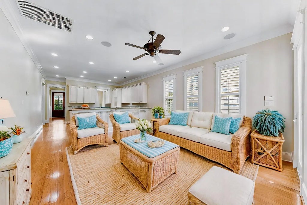 MOTIVATED SELLER ... Lovely 3/2 one story bungalow, located on a corner lot of a quiet "Green Space Street", quaint front porch, fully landscaped. Large Dining could be turned into a studio/office. Open living/dining concept, high ceilings, wood floors throughout, primary has an on-suite, separate bath & shower, and nice sized walk-in closet, LED lighting. Kitchen has granite countertops and stainless appliances, perfect for entertaining which leads out to a nice back patio great for grilling including sprinkler and mosquito systems Enjoy the friendly family style community of EVIA and its amenities including pool, lake front walking, gazebo's, shopping, Restaurants, Sugar Bean Coffee shop, Beauty Bar, Empouria wine bar, Moody Gardens Golf Couse next door, and more. No flooding & located in an AE flood zone.