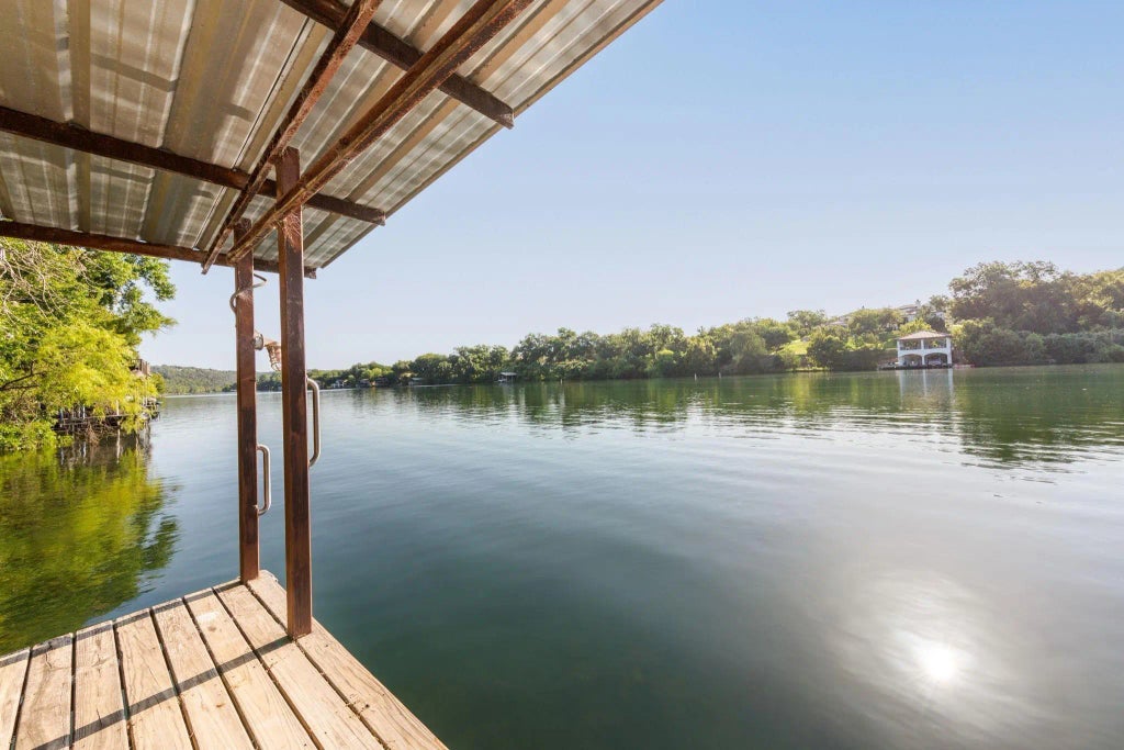 2309 Big Horn Drive, Austin, TX; Lot 665-A. Lake Austin Waterfront Lake House + Double Boat Dock. Welcome to Lake Austin living! This 3 bedroom, 2 bath lakefront home sits 1/3 acre on the shores of Lake Austin with a double dock and lift to get you straight on the water or fish from the upper or lower deck. From the home, open the shades for a view of the sparkling water. Class 4 metal roof, new deck and low maintenance Exterior makes life easy. Interior has vaulted ceiling on second floor, new granite countertops in den bar and upstairs bath. Kitchen granite and custom hardwood cabinets throughout plus new appliances. Oversized 2-car garage. Third bedroom Bunkroom sleeps 4. Home is being sold with furnishings options.