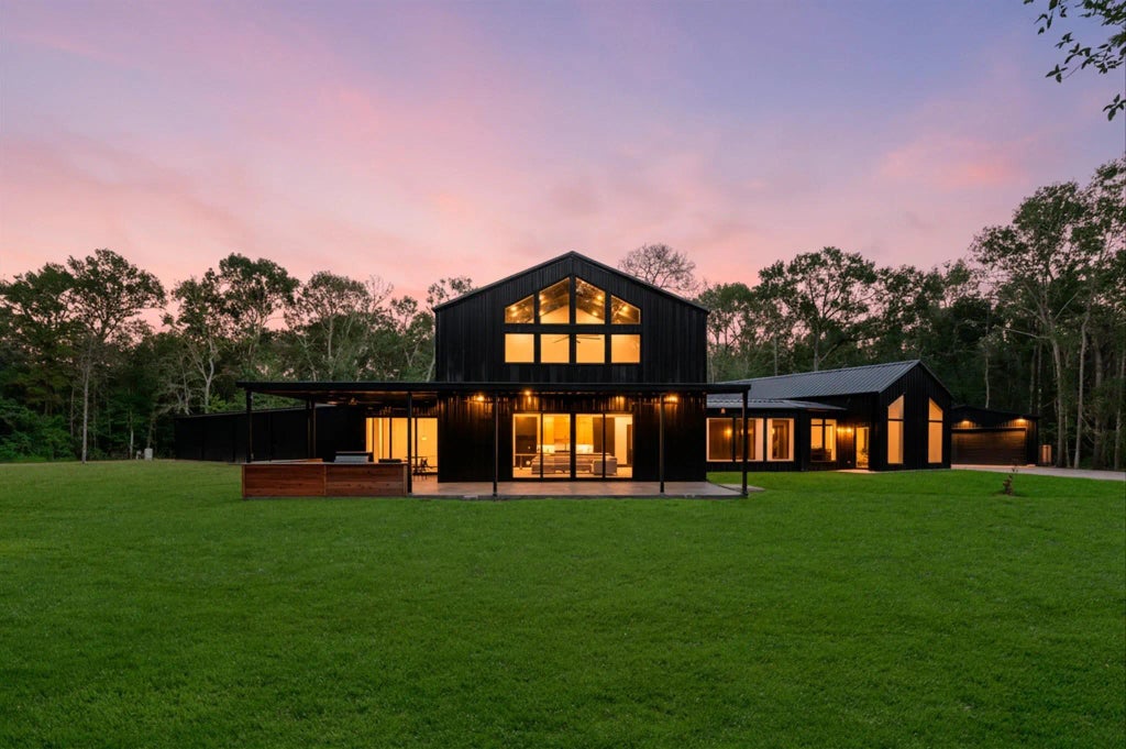 Welcome to your private Texas masterpiece — a brand-new luxury barndominium on 22.5 acres just minutes from The Woodlands. This custom home offers 26-ft ceilings, a grand entry with an iron pivot door, and a stunning open layout filled with natural light. The chef’s custom kitchen features Taj Mahal quartzite counters, custom cabinetry, top of the line appliances, and a large island overlooking the living area. Enjoy white oak engineered floors, 8-ft shaker doors, and high-end finishes throughout. The private primary suite includes a spa-like bath, dual vanities, and a walk-in closet with its own laundry room. A second laundry room with custom cabinetry adds convenience. The property also offers an office with private safe, a massive car garage/workshop, theater room with projector-ready wall, and a covered patio with outdoor kitchen — perfect for entertaining. Outside, enjoy your own stocked pond and private shooting range, making this the ultimate Texas retreat.