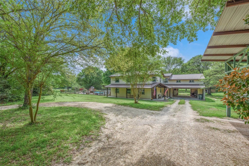 Your country retreat awaits! Situated on over 5 acres, this country home provides a peaceful and tranquil escape. With 5 bedrooms, 3 full bathrooms, 2 half baths and a large upstairs flex space, this home can accommodate large gatherings of friends and family. The kitchen features Thermador appliances (stove top, double oven & dishwasher), a hammered double-basin copper farmhouse sink, Southern Living custom wood cabinetry, Tiger eye granite counter tops with room for counter seating and a built-in Miele refrigerator truly making this kitchen the heart of the home. The well-sized dining room has a picturesque view of the in-ground pool and deck. the primary bedroom is located on the first floor with en-suite. The en-suite features a rustic rock wall and has a separate water closet, dual sinks, walk-in shower with dual shower heads & a large soaker tub. There are several out-buildings located on the property which can be used for storage or converted for use as a shop or for animals.